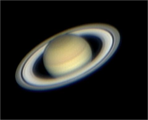 Sein scheinbarer Winkeldurchmesser beträgt je nach Erdentfernung zwischen 15" und 20", jener der Ringe zwischen 37" und 46". Die sogenannten Äquatorstreifen von Saturns Wolkenschichten sind weniger deutlich als bei Jupiter, was wahrscheinlich mit einer hochlagernden Dunstschicht zusammenhängt. Bis zum Jahresende 2009 wurden 62 Saturnmonde entdeckt, der größte davon ist Titan mit 5150 km Durchmesser. |